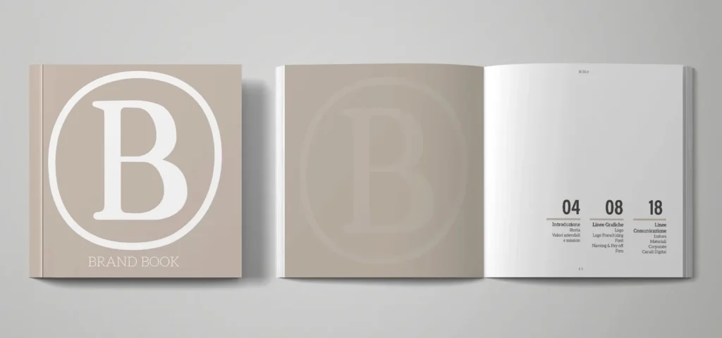 - Linee guida visive, con specifiche su colori, tipografie e utilizzo del marchio.