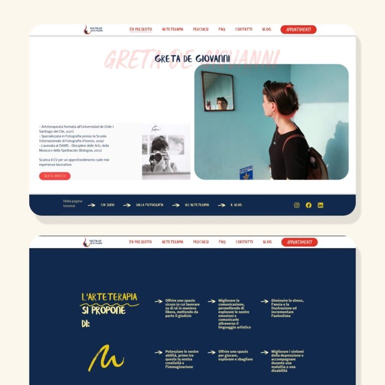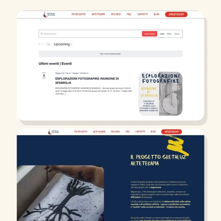 Abbiamo collaborato con Greta De Giovanni, arteterapeuta e fondatrice del progetto Gretaluz, per sviluppare un sito professionale che rispecchiasse il suo approccio e la sua identità. L’obiettivo era creare una piattaforma chiara e accessibile, in grado di gestire in modo efficace il blog e gli appuntamenti, oltre a potenziare la comunicazione con associazioni ed enti interessati al suo lavoro.