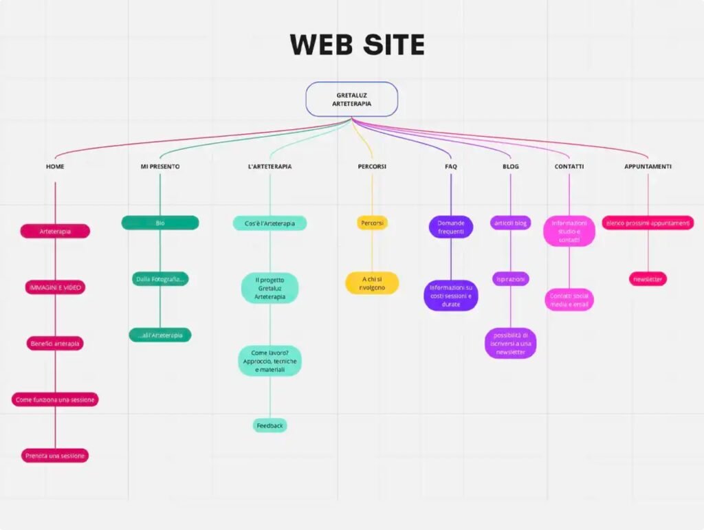 - Sviluppo della sitemap: progettazione della struttura del sito per un’organizzazione chiara e intuitiva dei contenuti.