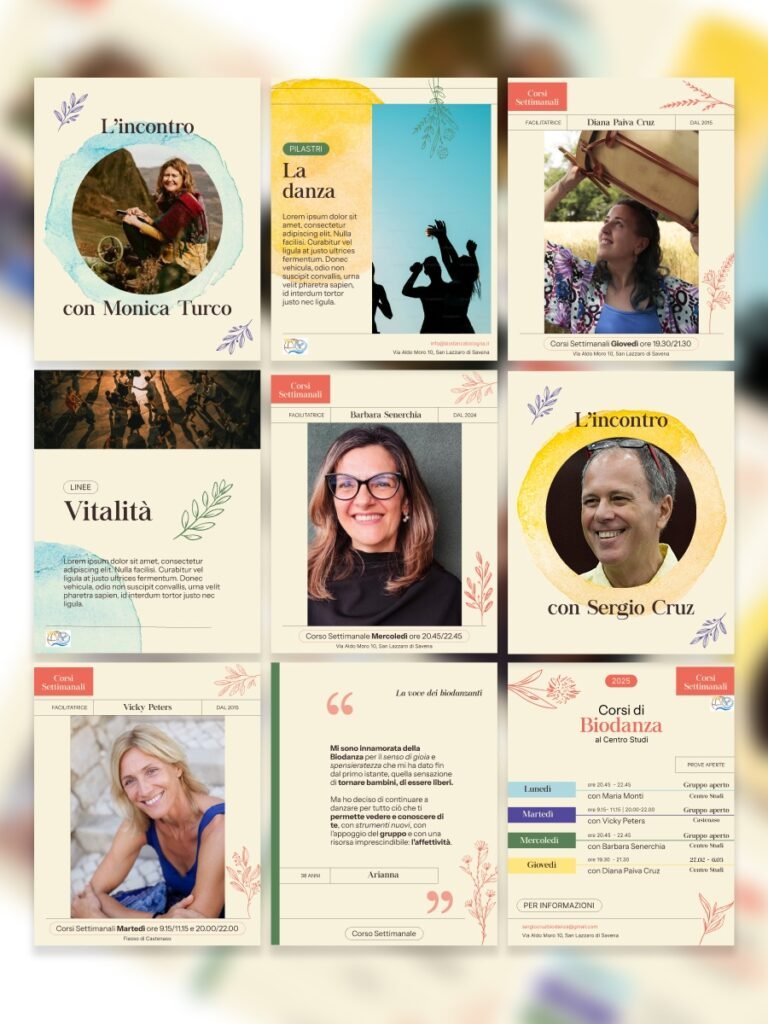 - Definizione dell’identità cromatica e tipografica, scegliendo colori e font che enfatizzassero l’approccio dinamico e partecipativo dell’associazione.